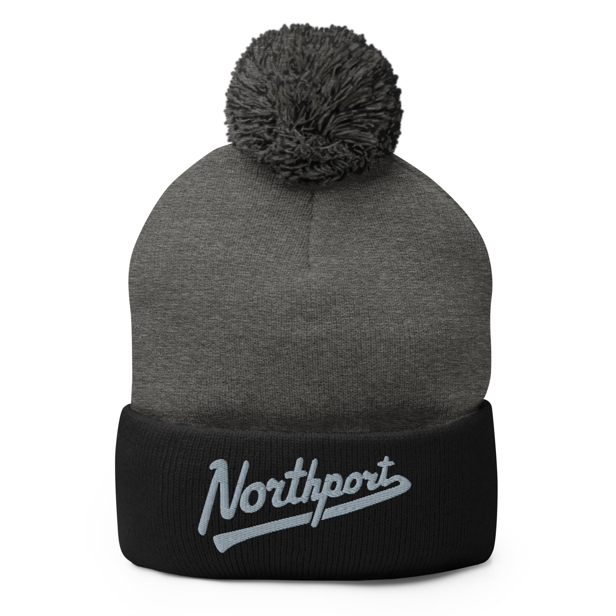 Northport Script Embroidered Pom-Pom Beanie - Black / Dark Heather