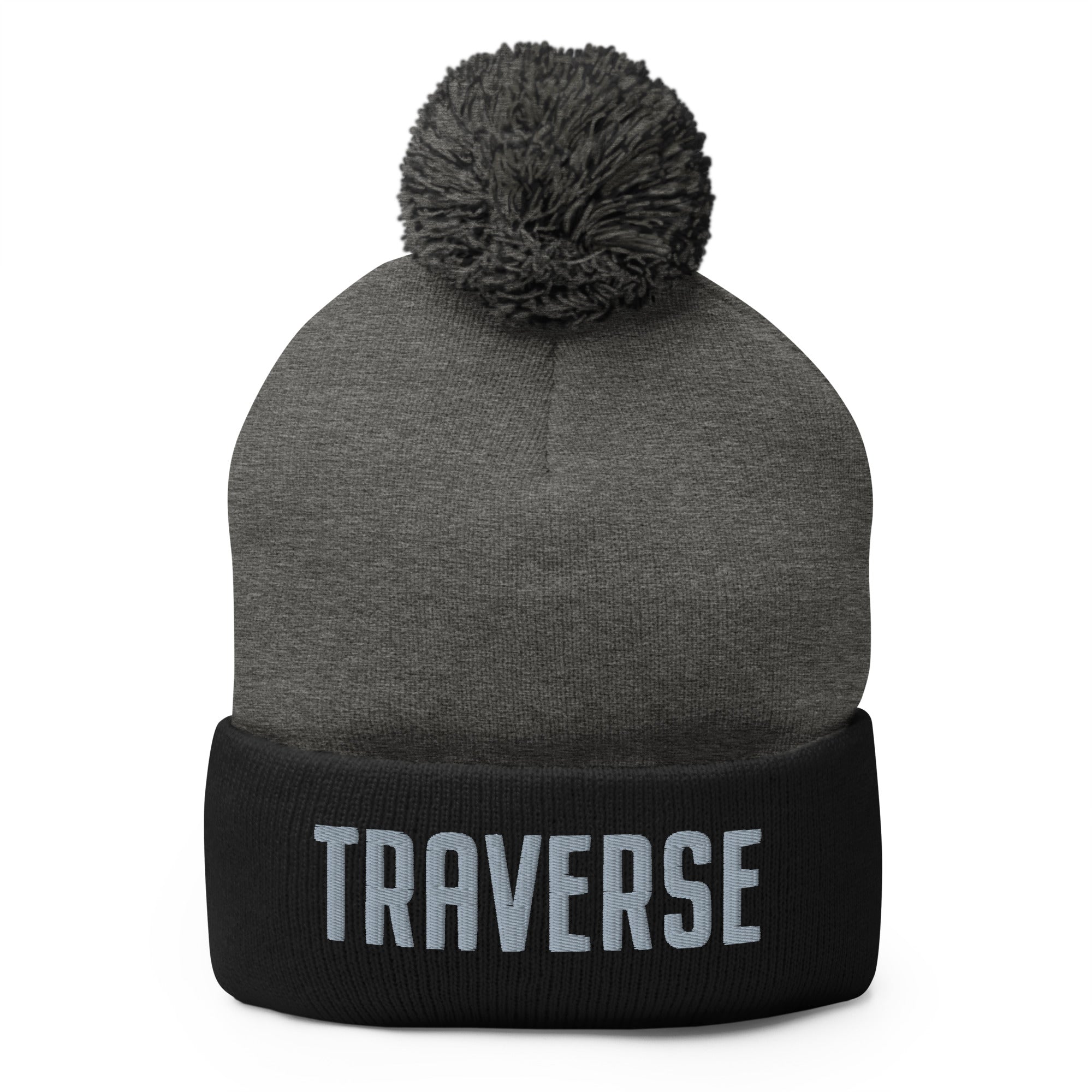 Traverse Embroidered Pom-Pom Beanie - Black / Dark Heather